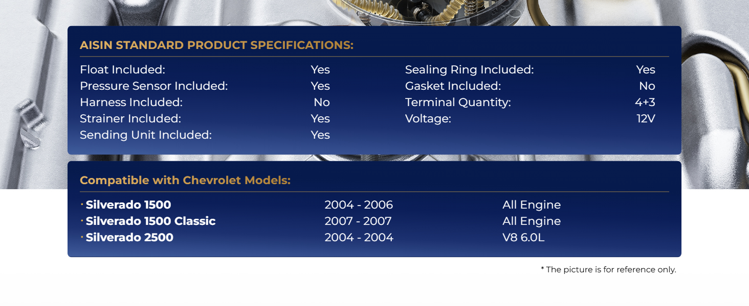 [About AISIN] - Leveraging AISIN's legacy as an automotive leader since 1965, our Fuel Pumps are engineered to the exacting standards of global manufacturers, providing robust, seamless operation and dependable long-term performance