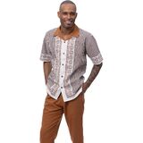 MONTIQUE Walking Suit For Men 2 Piece Set - Short Sleeve Shirt and Long Pants, Solid Colors - 2501