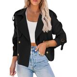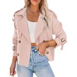 Momuk Women's Cropped Trench Coat — a long sleeve casual jacket that seamlessly blends functionality with modern style.