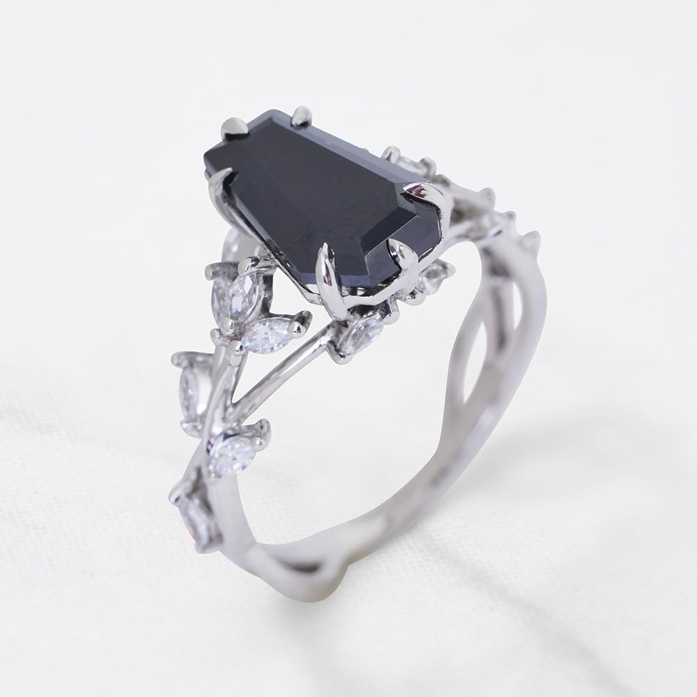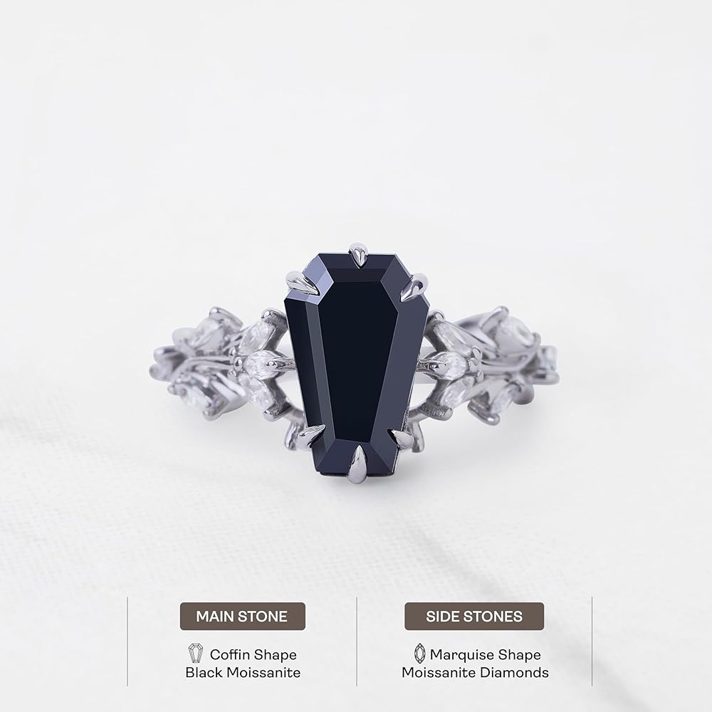 Black Moissanite Coffin Engagement Ring Captures The Darker Aesthetic of Gothic Culture, Coffin Rings Become a Statement of Eternal Love and Commitment to One Another “Till Death Do Us Part”, With a Nod to The Gothic Tradition of Finding Beauty in The Macabre.