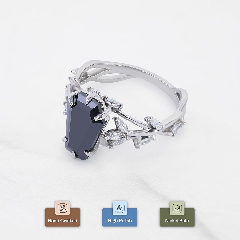 Black Coffin Engagement Ring is a Unique and Non-Traditional Choice, It's a Unique Blend of Dark Romance and Gothic Elegance. It's an Attractive Alternative to Traditional Rings and a Meaningful Symbol of Your Eternal Love and Commitment.