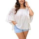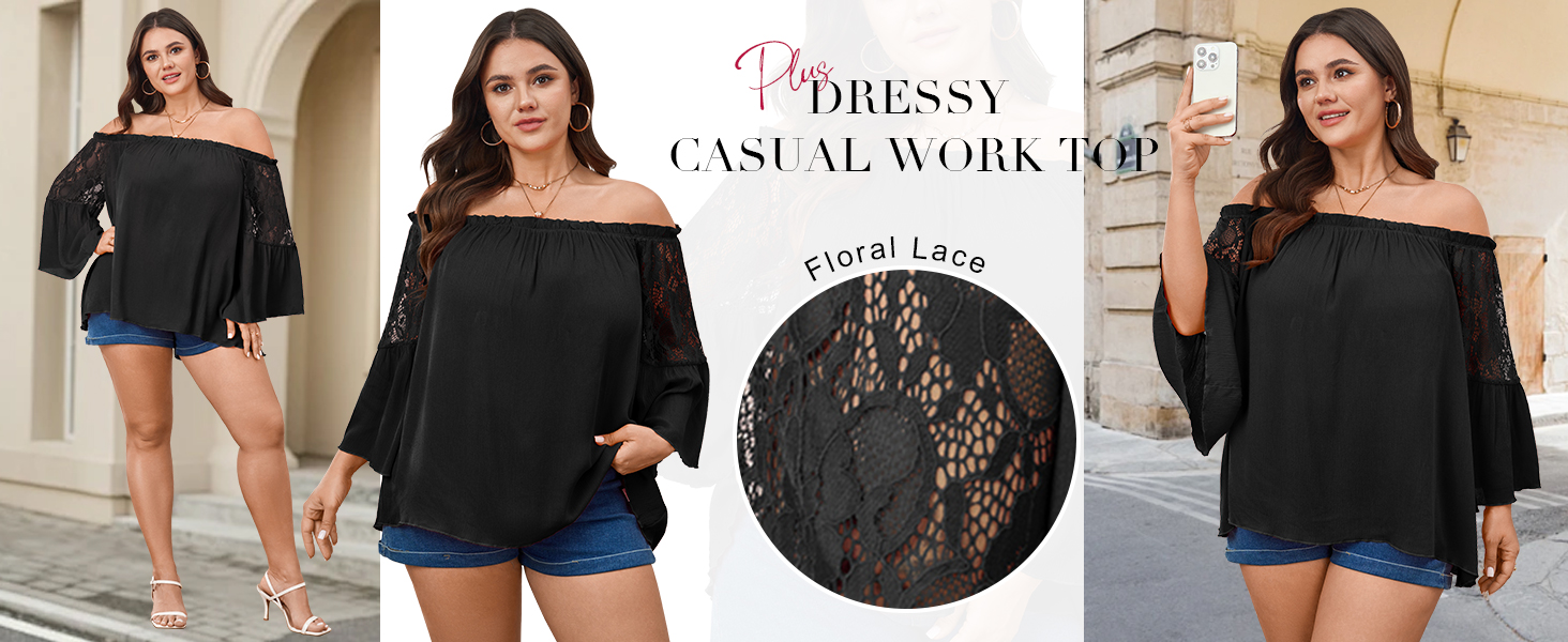 Material: Plus size off the shoulder top is lightweight woven fabric with a soft, airy feel, breathable and comfortable for warm weather. The plus size summer blouse is non-clingy and flowy texture drapes beautifully over curves without feeling heavy or restrictive. Lace patchwork on sleeves adds a delicate, feminine touch while keeping the top light and breathable