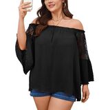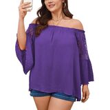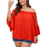 Design: Plus size off the shoulder blouse features an elastic neckline for a secure and flexible fit. Romantic bell sleeves with lace detailing create a flattering arm silhouette. Loose, flowy fit skims over the tummy and hips, offering a relaxed, figure-friendly shape that enhances curves without hugging
