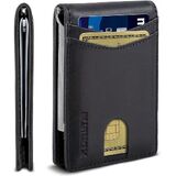 • RFID Anti-Theft SECURITY - This slim wallet for men is equipped with German Institute Certified RFID Security technology, a unique metal composite, engineered specifically to block 13.56 MHz or higher RFID signals to protect the valuable information and privacy
