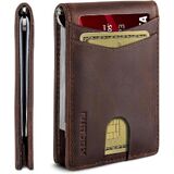 • Slim & Stylish – Crafted from genuine top-grain leather, this money clip wallet holds 10–12 cards and U.S. bills without the bulk. At just 3.9 x 2.85 x 0.5 inches, it slips easily into any front pocket. Thoughtfully designed with two outer quick-slot pockets and dual ID windows, it's ideal for organizing business cards, credit cards, debit cards, and cash. A convenient thumb notch lets you access your most-used cards in seconds