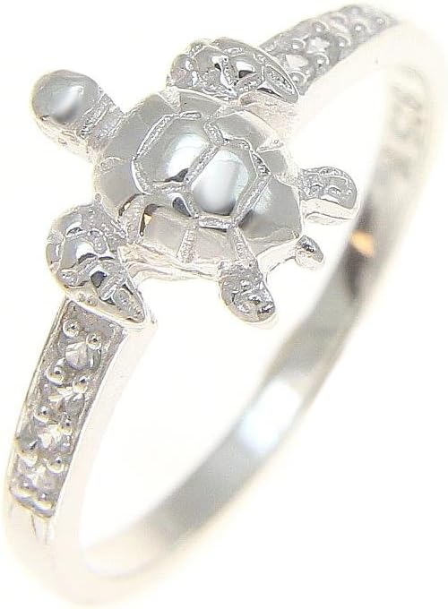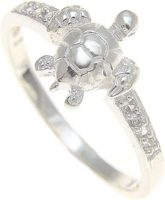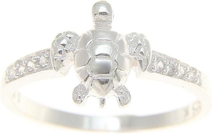Sterling silver 925 Hawaiian sea turtle ring with clear cz size 3 - 10