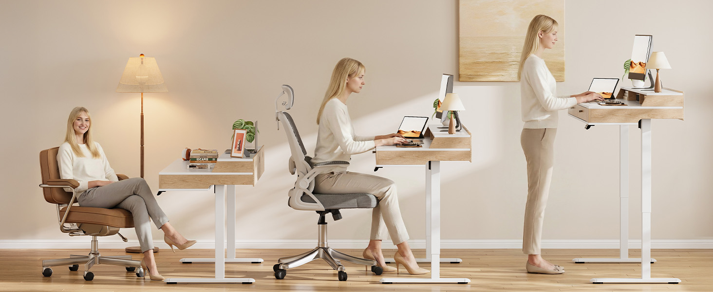 Digital Memory Presets for Personalized Comfort: This standing up home office desk adjusts from 28 to 46 inches to suit users of all heights. The clear digital display and three programmable memory buttons let you save your ideal sitting and standing positions. With one touch, effortlessly switch between heights for a smooth, ergonomic workflow—reducing fatigue and keeping you comfortable all day long.