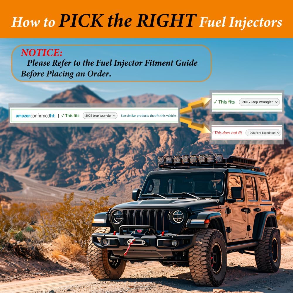 【ATTENTION】- Please enter your vehicle model in the "Amazon confirmed fit" plugin before purchasing these fuel injectors. It will guide you to purchase the correct fuel injectors more conveniently.