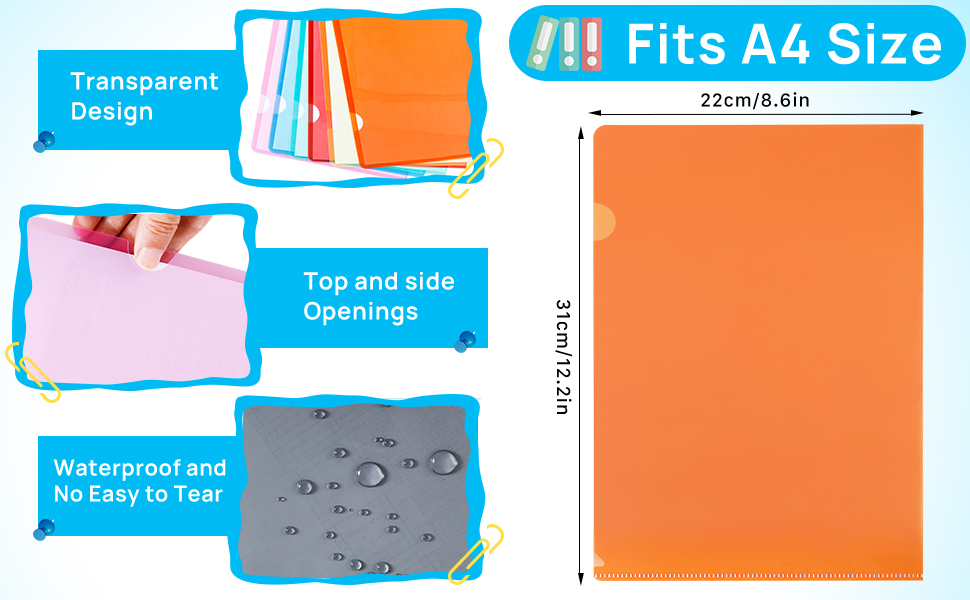 Easy to Carry: Our clear plastic document folders are lightweight and portable, providing reliable protection for your papers. Each folder can hold approximately 30 sheets and can be used with plastic envelopes or file bags to organize materials by subject. They fit easily into business bags, school bags, or handbags to save space and keep documents organized.