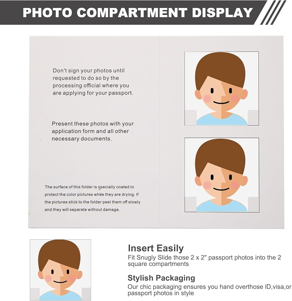 Informative Element: PruQuaiy's Passport Photo Folders Include a Black Panel Detailing the Passport Photo Process | Serving as a Reference for Requirements