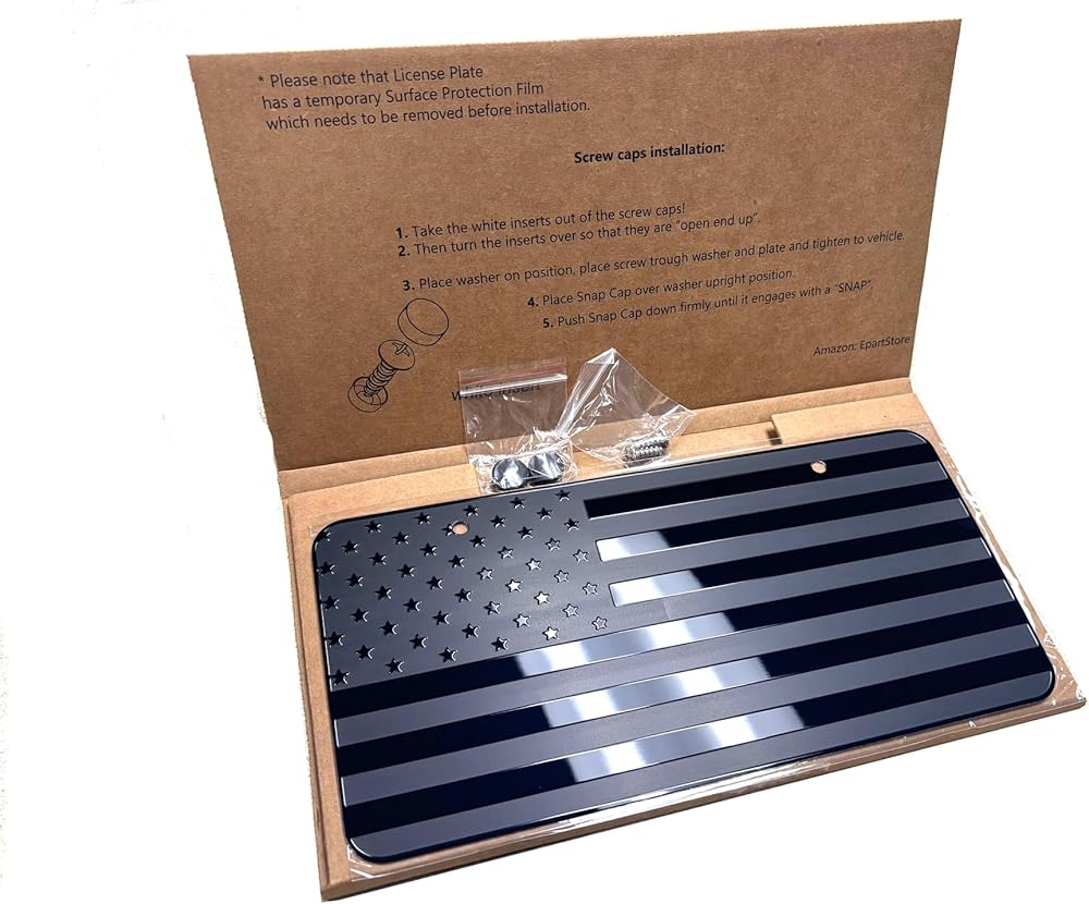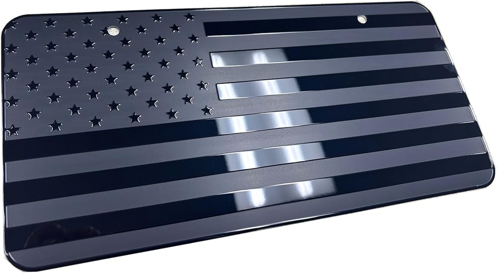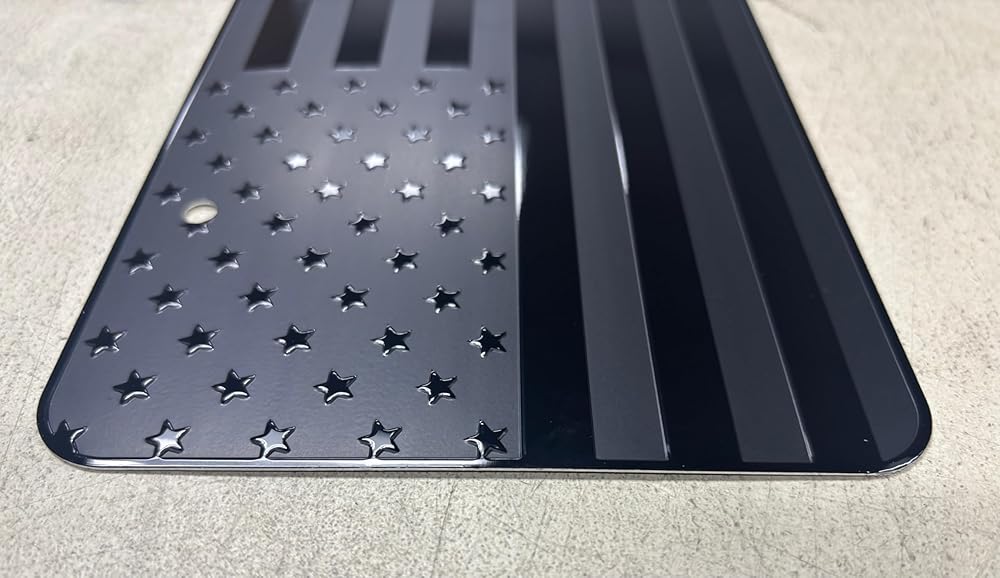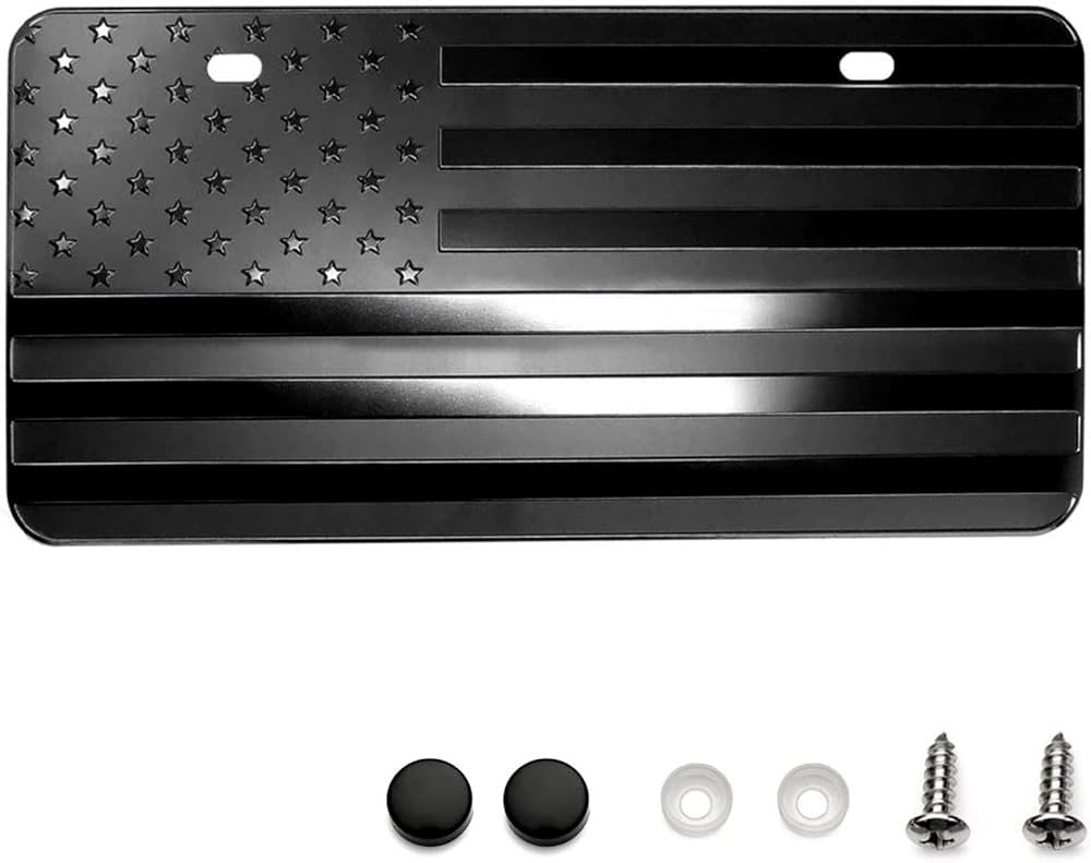 USA Black Flag Metal Stamped Embossed License Plate 2 Hole (12"x6", Black)