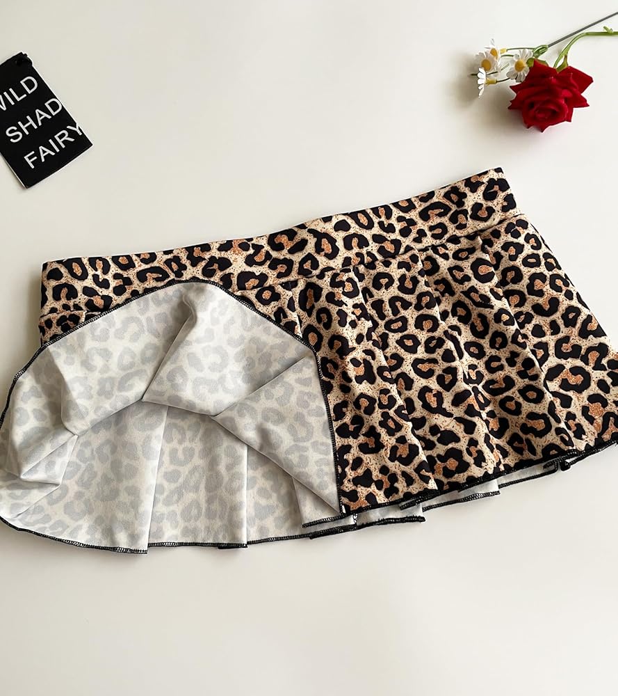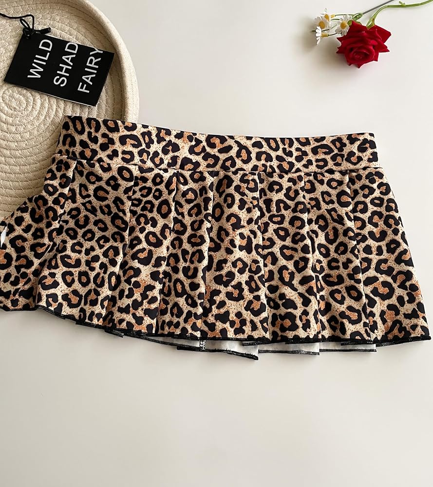 Features: Classic leopard patterm, ruffled hem, Elastic waistband, A line, flowy and chill mini skirt, Micro skirt, Y2K style