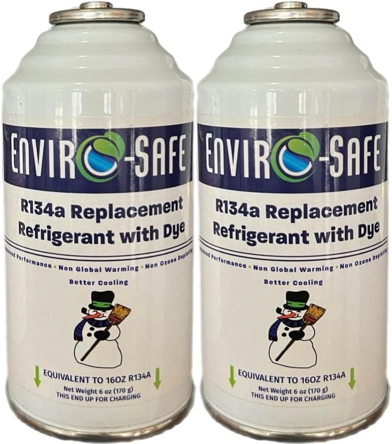 Product composition: Petroleum Gases, Liquefied. "THIS PRODUCT IS NOT HFC-R134A" DO NOT USE IN AMMONIA SYSTEMS! DO NOT PULL A VACUUM ON THE A/C SYSTEM. If you plan to pull a vacuum or are charging a larger system or dual air system such as on a van, suburban, or SUV, use Enviro-Safe Industrial R134a Replacement refrigerant. Enviro-Safe R134a Replacement with Dye can be used in all R134a applications, including pre-1994 automotives that have complied with the US EPA Snap regulation. Bring your a/c performance back to the original cold air! This is the original Enviro-Safe Refrigerant that we first introduced over 29 years ago. 1 can of Enviro-Safe R134a Replacement refrigerant is equal to 1lb of R134a. Operates at lower head pressure If you use the R134a Replacement with Dye, you cannot pull a vacuum because the product comes in a less expensive can to keep costs lower for the customer. If you are charging something like a dual air system in an SUV, you need to use the Industrial 134a replacement. Offers improved cooling properties and performance Compatible with most refrigerant oils Non Ozone depleting Non Global warming R134a can thread Use up to 60% Less Made in America! Enviro-Safe has been manufacturing hydrocarbon refrigerants for over 22 years. Flammable to an open flame or spark and proceed with caution if used in systems designed for non-flammable refrigerants. This product cannot be shipped to Alaska, Hawaii, or any overseas country except in pallet quantity. We are sure you are aware of other companies that market hydrocarbons that contain the “rotten egg or sulfur odor”. This smell comes from the sulfur in a blend that is unrefined or from an additive called ‘mercaptin' which some companies add for the odor itself. Mercaptin is made from sulfur. When sulfur is introduced to moisture, it becomes an sulfuric acid. Enviro-Safe R134a Replacement Refrigerant is highly refined! Enviro-Safe does not contain the “rotten egg, sulfur, propane” odor. The products we market have been perfected over the years, and are pharmaceutical grade, highly refined and computer blended to within 1/4 of 1% by a major American petrochemical supplier. This means our products are consistent each and every time our customers use them! Enviro-Safe carries a guarantee that Enviro-Safe Industrial R134a Replacement Refrigerant will not harm air conditioning, compressors or other related mechanical equipment when used in accordance with Enviro-Safe directions. Enviro-Safe R134a Replacement Refrigerant also meets international standards such as—ISO 5149, BS 4434-1995, AS/NZS 1677 and ASHRAE 5149. DIRECTIONS FOR USE NOTE: You must check and repair all leaks before charging! 1. Shut off compressor. 2. Recover existing refrigerant into suitable container. 3. Check for any leaks in the A/C system. 4. Connect gauges and hoses with compressor off. 5. Do NOT charge this product in a vacuum state. 6. To install product, invert can and install product liquid on low-pressure side. 7. After minimum charge, test system for leaks. If no leak is detected, turn compressor on high, add additional product to achieve correct pressure. DO NOT EXPOSE TO ANY IGNITION SOURCE. 8. This product is flammable to open flame/spark and should be leak tested with dye charge, UV glasses, an electronic hydrocarbon leak tester or soap bubbles. If leak is detected, ventilate area, evacuate system, repair leak and install new product as instructed above. 9. If pressure and temperatures are correct, shut off compressor and engine, disconnect gauges; install service port caps and system label in clearly visible area. DO NOT OVERCHARGE. Fill low pressure to manufacture's specifications. In some cases, overcharge the system. Overcharging the system may clearing the sight glass might affect cooling ability and performance and may damage the A/C compressor. Please refer to the manufacturer's specification prior to recharging the a/c system for proper pressures. DO NOT overfill the system. DO NOT exceed 60 psi on low pressure port. The low pressure port is generally the larger diameter line from compressor. Flammable to an open flame or spark, proceed with caution if used in systems designed for non-flammable refrigerants. DO NOT smoke or use spark, or flame when using any refrigerant, refrigerant support product, other flammable products, when servicing air conditioning equipment. The Temperature Pressure Chart is specific to the temperature of refrigerant when inside of the a/c system. These PSIG pressures are not the operating pressure. The Temperature Pressure Chart displays the readings to charge on manifold gauge, to your a/c systems to refrigerant.
