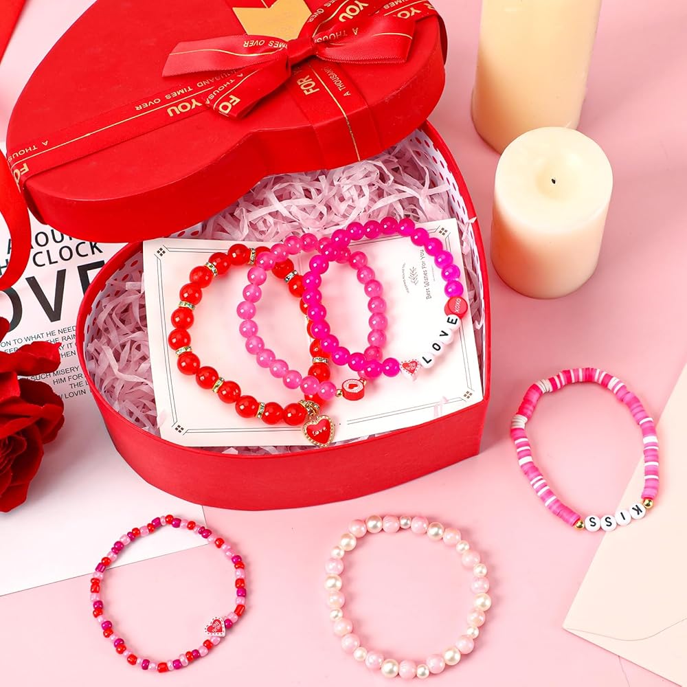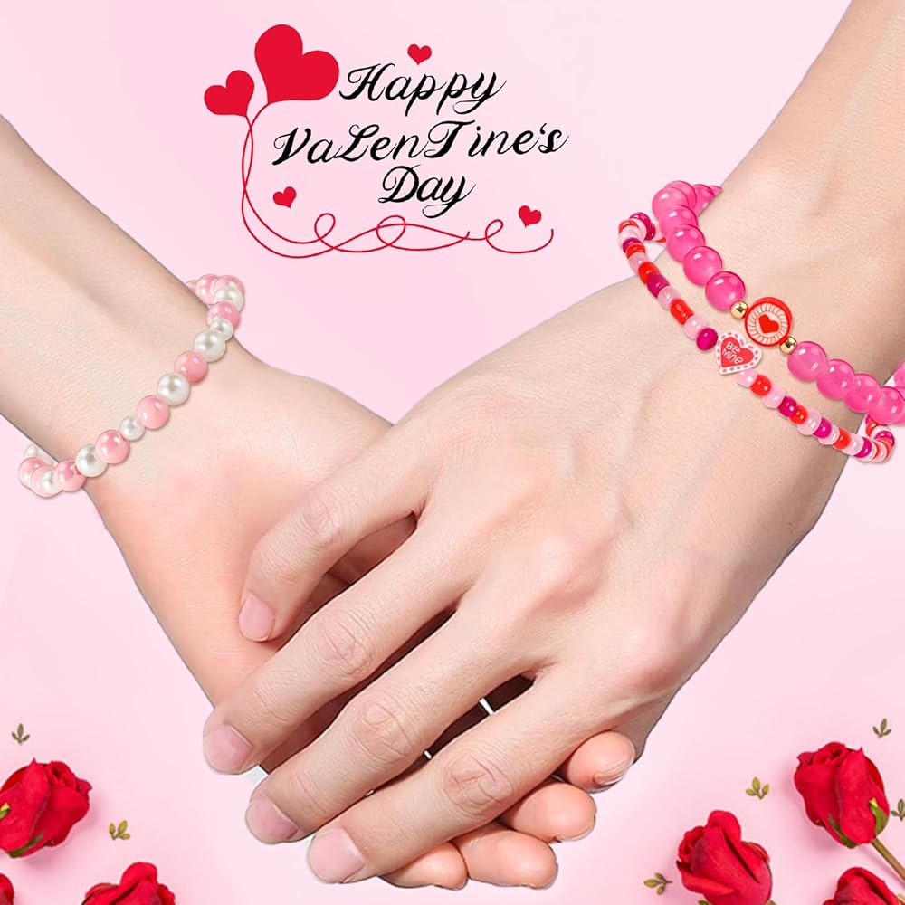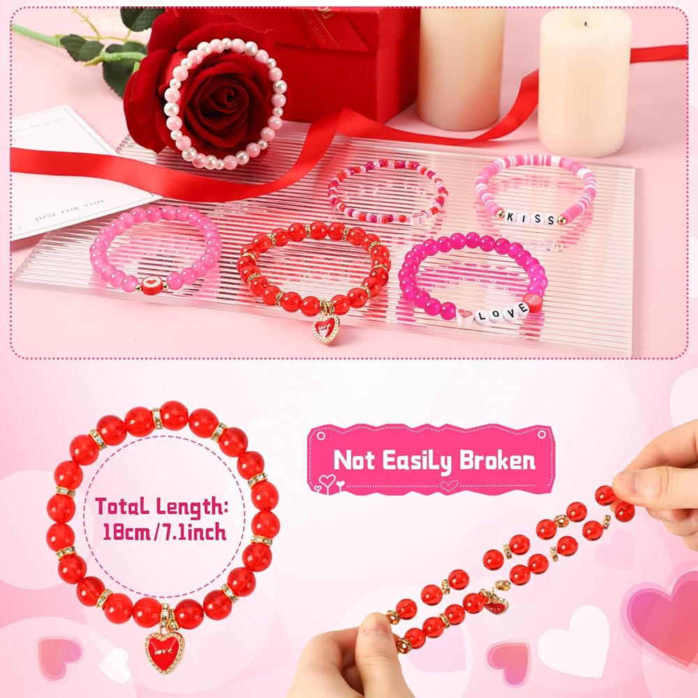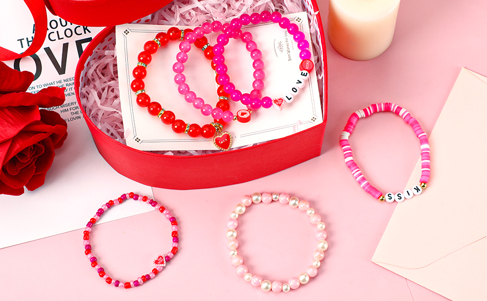 Suitable Size: Each Valentines bracelets is about 18 cm/7.1 inches long, with good elastic design, which can adapt to most wrist sizes, ensure a comfortable fit, and also allow you to wear Valentines jewelry for women easily and show your charm