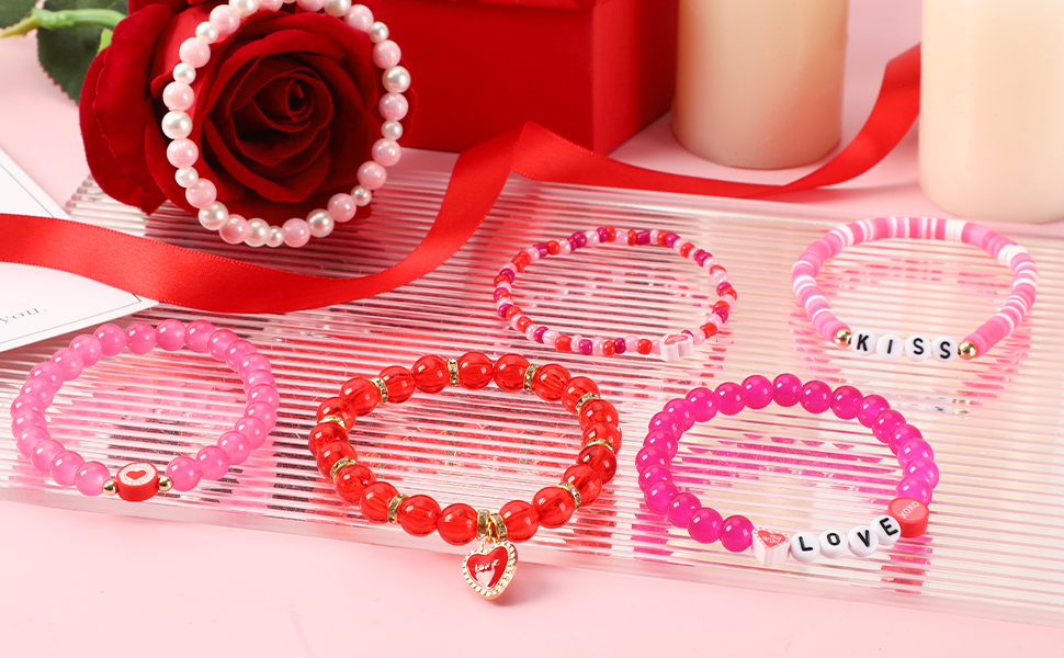Good-Quality Materials: These Valentines jewelry for women are made of good-quality glass beads, clay beads and alloy beads, which ensure the glossiness, durability and wearing comfort, and make the whole Valentines jewelry present a high-grade and elegant texture