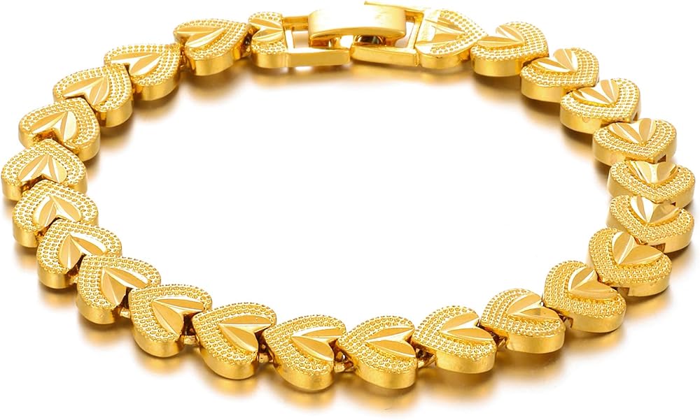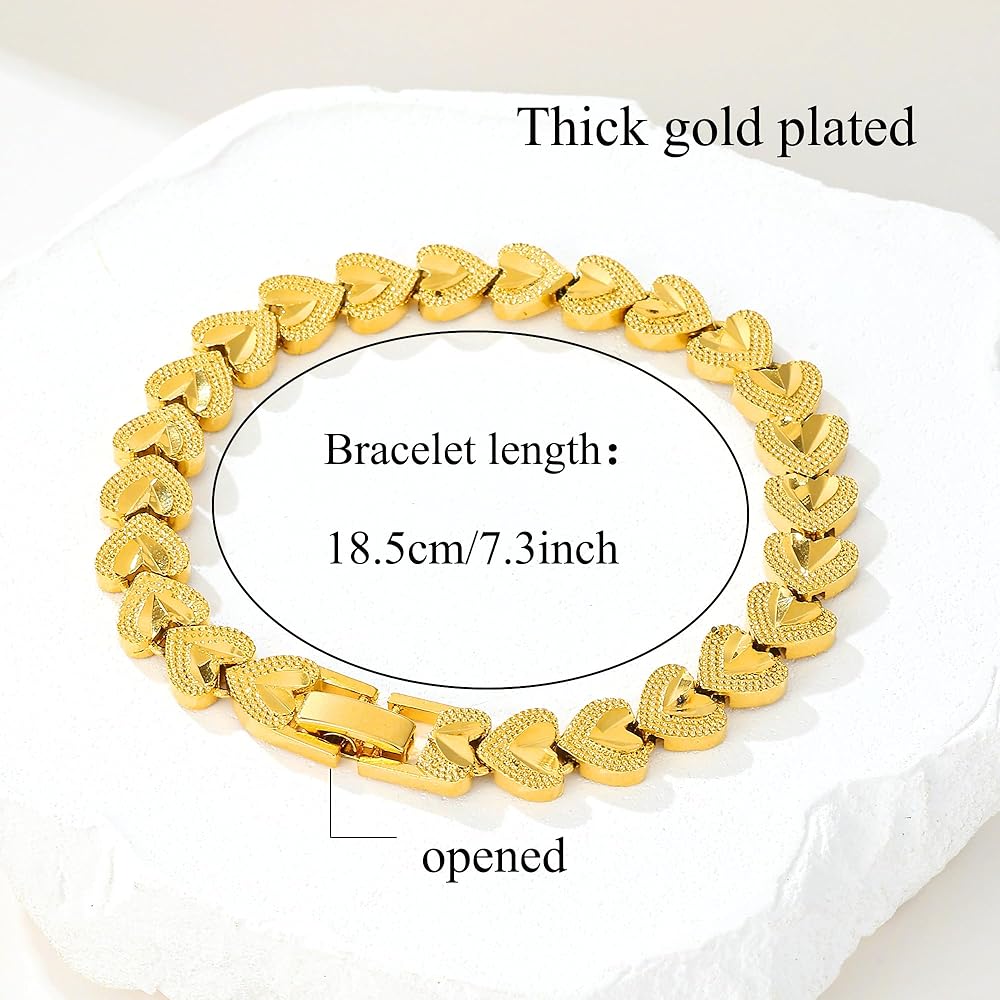 Luxurious Design: This stunning18cm/7inch bracelet features a heart-shaped pattern crafted from high-quality thick gold plating copper material for an elegant and eye-catching look.
