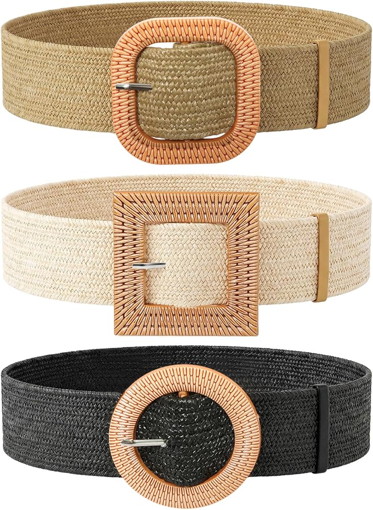 Included Components: 3 pieces of straw woven elastic waist belts in 3 different styles