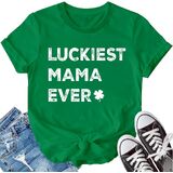 UNIQUE DESIGN:This St Patrick's Day mama shirt for Women features a "luckiest Mom ever" print and a lucky four-leaf clover element design. It was like a sweet statement of how lucky the family was to have her, especially on this joyous Irish St. Patrick's Day.