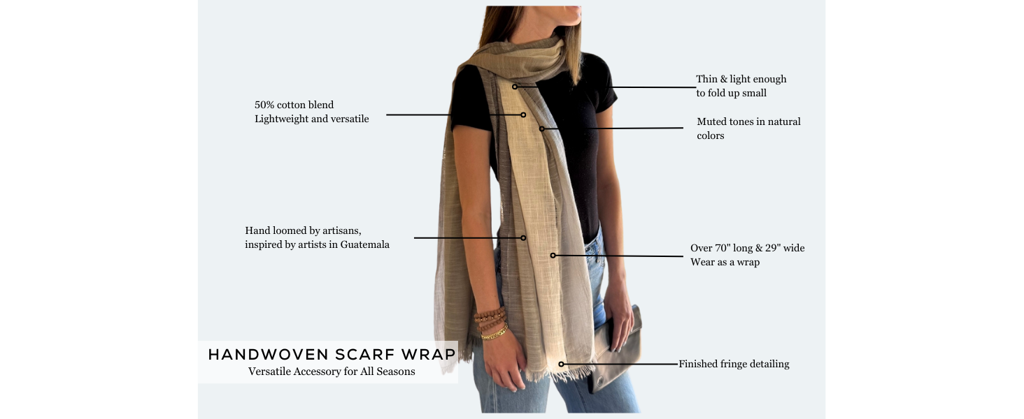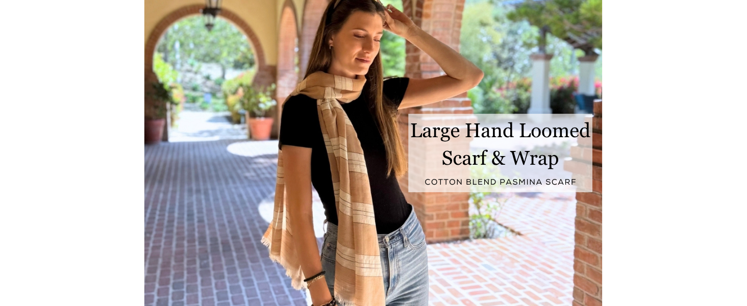STYLE: Our women's shawl scarf features subtly woven stripe patterns and comes in muted neutral tones that pair effortlessly with any wardrobe. Whether you're styling it as a fashion scarf, womens wrap scarf, or simply a cotton scarf, this piece brings understated elegance. The generous sizing and timeless stripe designs offer year-round styling for casual or formal wraps and shawls needs.