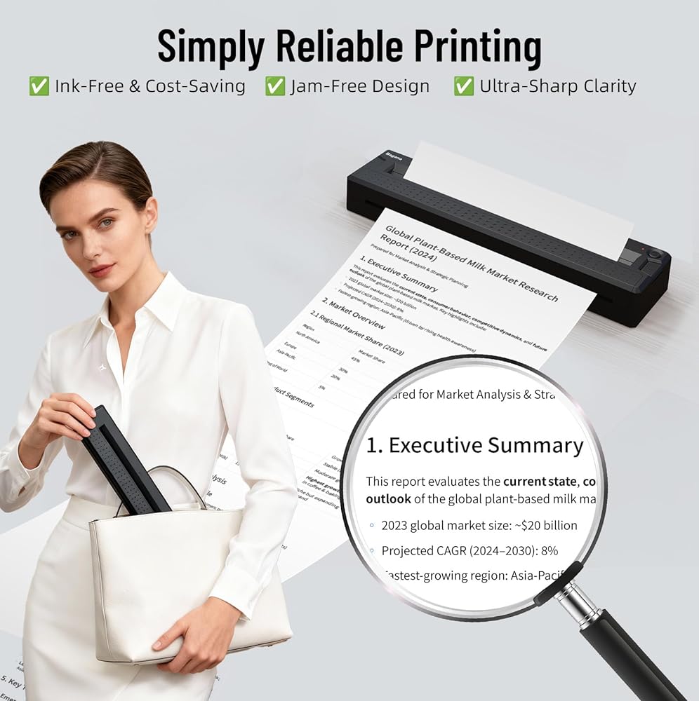 Bagana Portable Printers Wireless for Travel, Bluetooth Thermal Small Printer Supports 8.5" x 11" US Letter & A4 Size, Inkless Mobile Compact Printer for Phone&Laptop for Home Office School