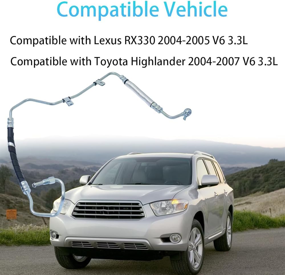 Compatible Vehicles: Power steering pressure line hose assembly compatible with Lexus RX330 2004 2005 V6 3.3L, compatible with Toyota Highlander 2004 2005 2006 2007 V6 3.3L
