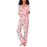Contrast knit piping inserted around the collar Self-sleeve bands with contrast knit piping 4 buttons down the center front Chest Pocket Side pockets Fully elasticated waistband Self-hem bands with contrast knit piping Jersey fabric made with organically grown cotton Fabric is certified by Global Organic Textile Standard (GOTS) Made of Eco-Friendly Materials Imported Garments are not pre-shrunk Neckline: Notch Collar Closure: Top - Button Down; Bottom - Pull On Sleeves: 24 1/4" [XS-XL]; 25" [1X-3X] Top Length: 26 1/2" [XS-XL]; 28 1/2" [1X-3X] Inseam: 30 3/4" [XS-3X] 93% Organic Cotton 7% Elastane