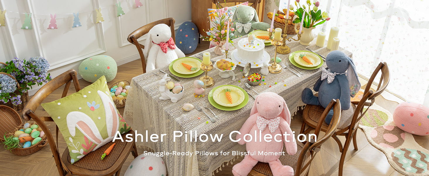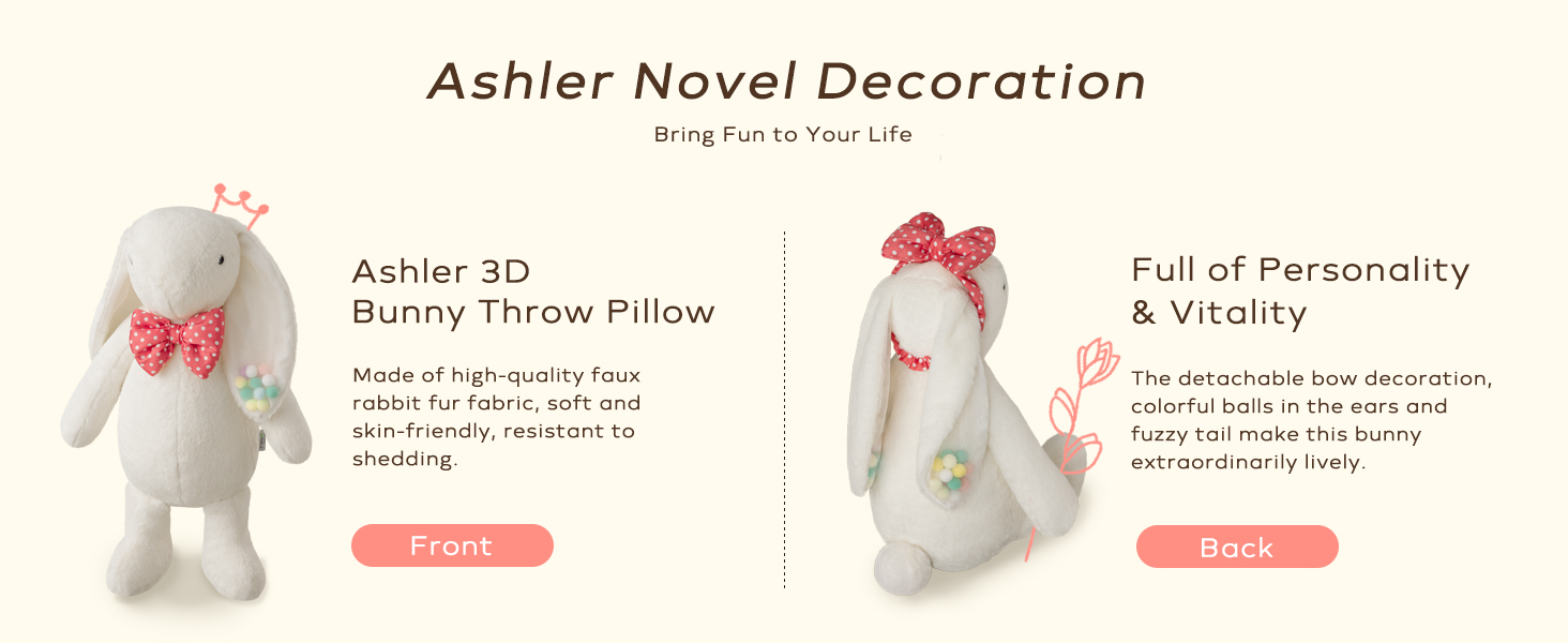【Adorable Bunny Pillow】Ashler's bunny shaped throw pillow showcases a polka dot patterned bow tie that can additionally be tied around the head as a hair band. Engage in DIY to personalize your decoration, as it is undoubtedly the highlight of this pillow.