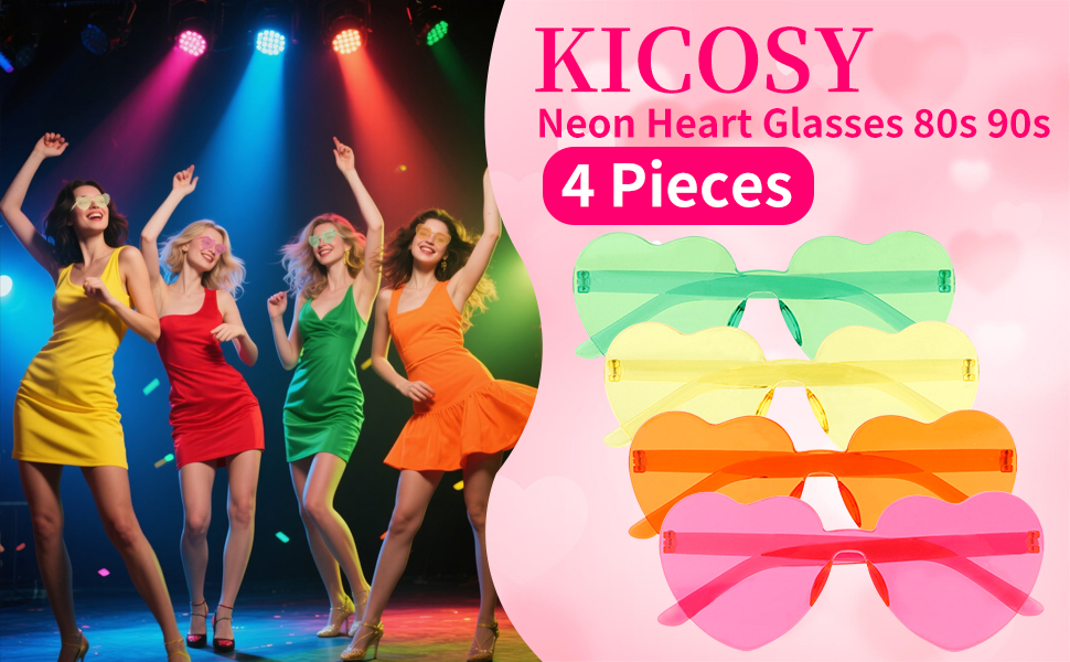 4 Pack Value Set:Comes with 4 pairs of neon heart sunglasses – great for sharing with friends at events, gifting to retro lovers, or having backups for different outfits and moods. Product size is suitable for adults.