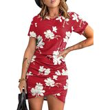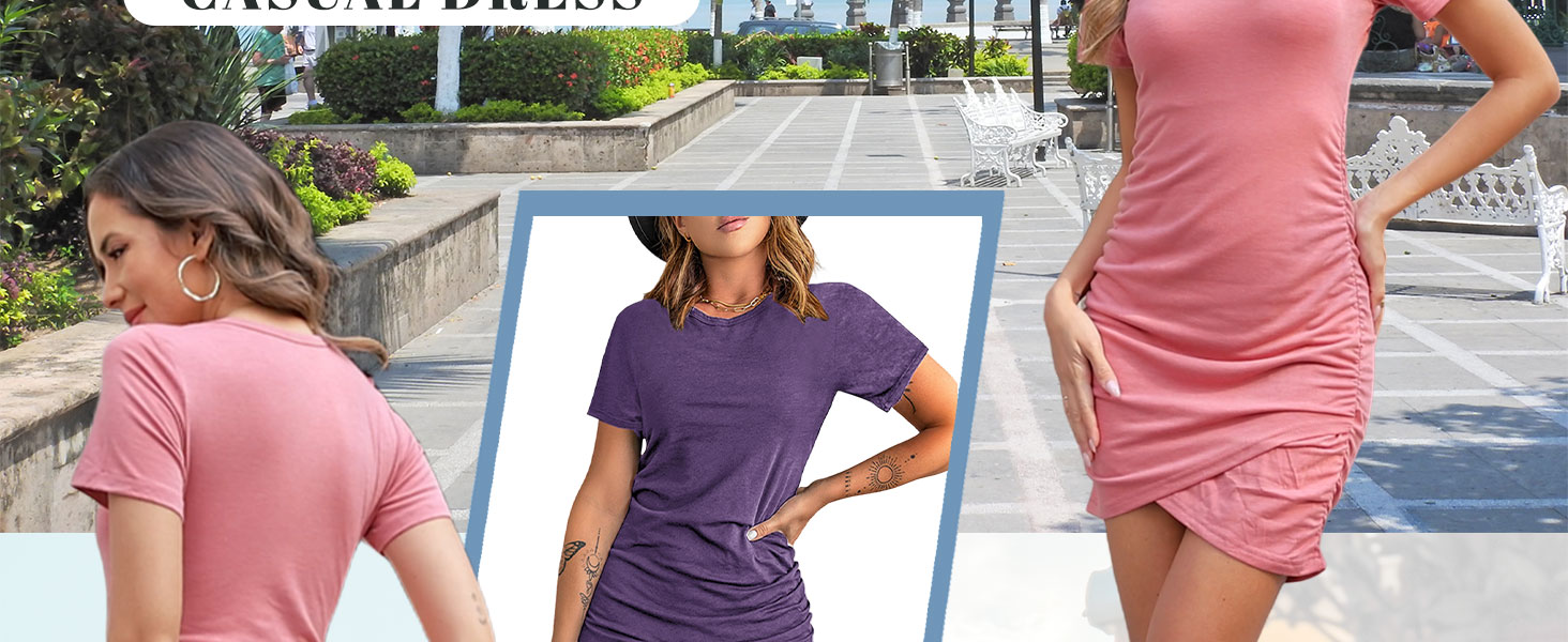 Design: Bodycon, short sleeve, ruched, wrap, solid color or print, cross design, stretchable women casual wrap dresses