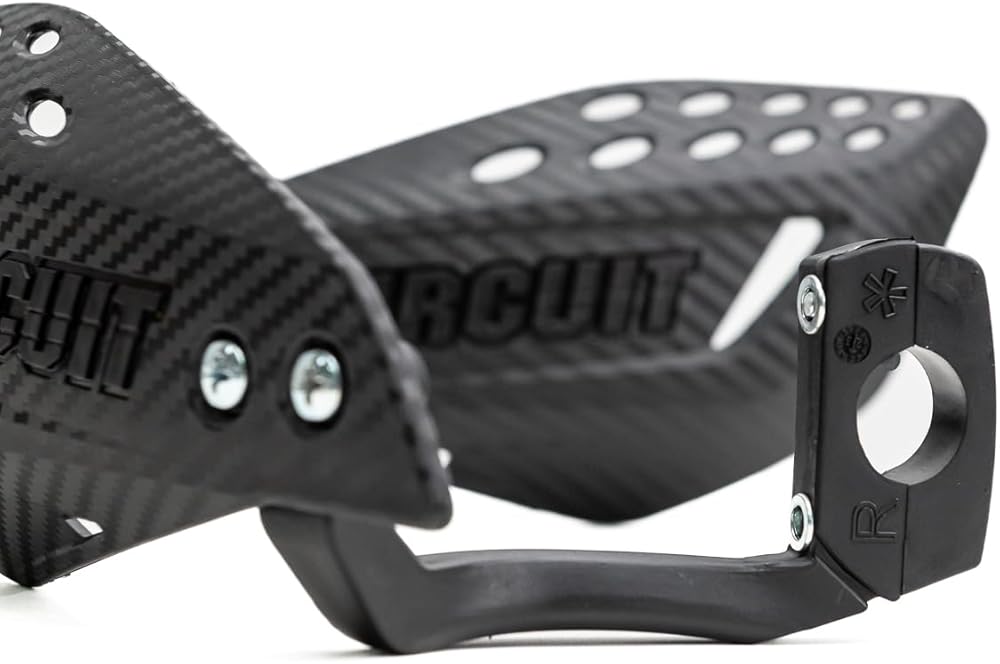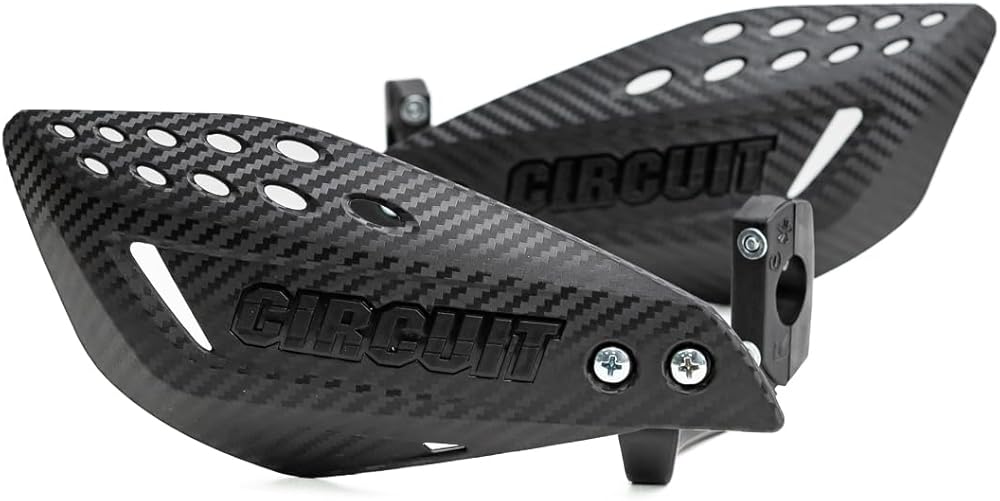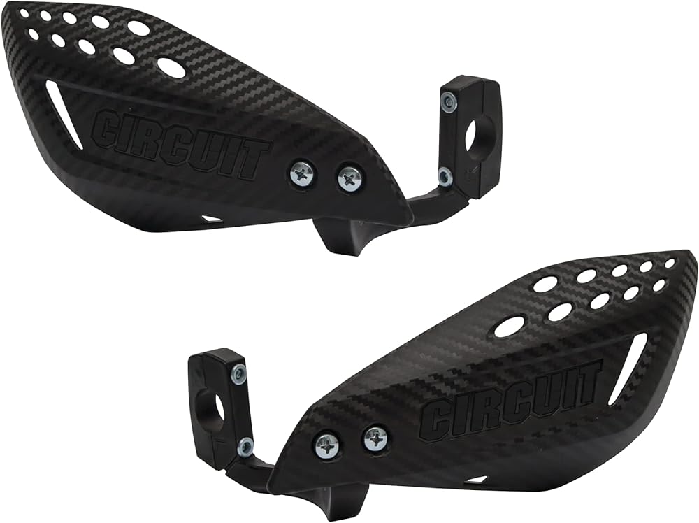 Handguards with a new and attractive design, made with a special high-strength polymer, super deformable, carbon LOOK finish. The kit includes nylon brackets for universal mounting.