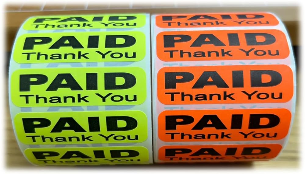 "Paid Thank You" Label Sticker, Self-Adhesive Retail Merchandise Labels - 2" Width by 0.5" Height 1 Roll 1000 Label Pack **Made in USA**