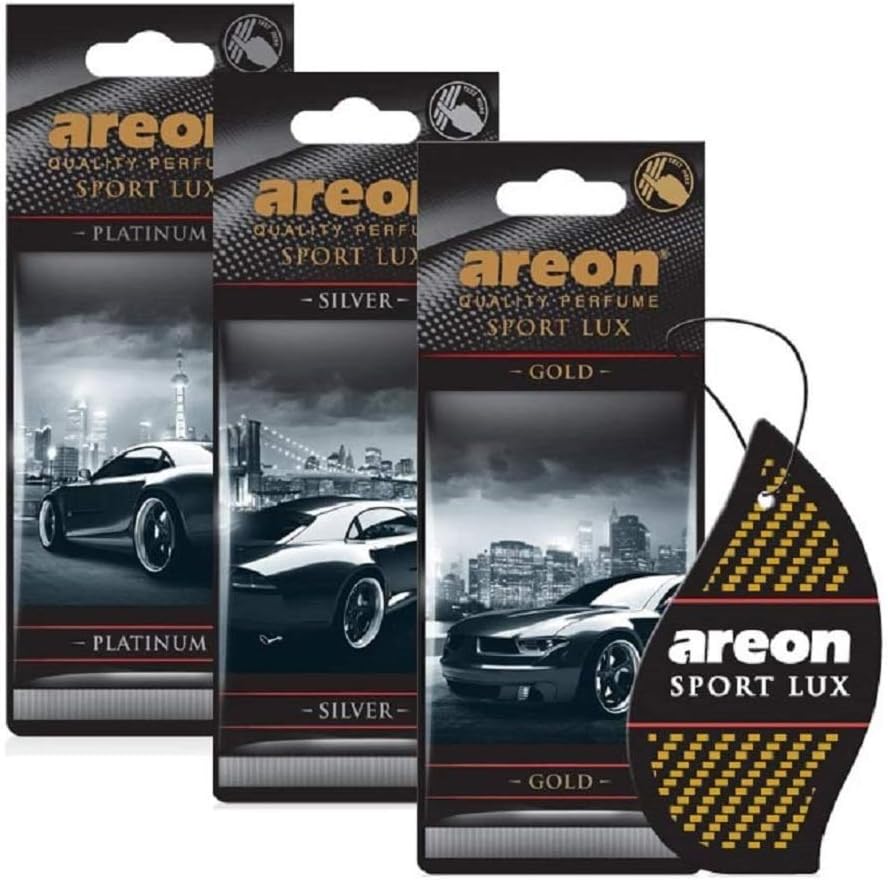 Areon Sport LUX Quality Perfume, Car & Home Air Freshener, Assorted pack of 3 (Platinum, Silver, Gold)