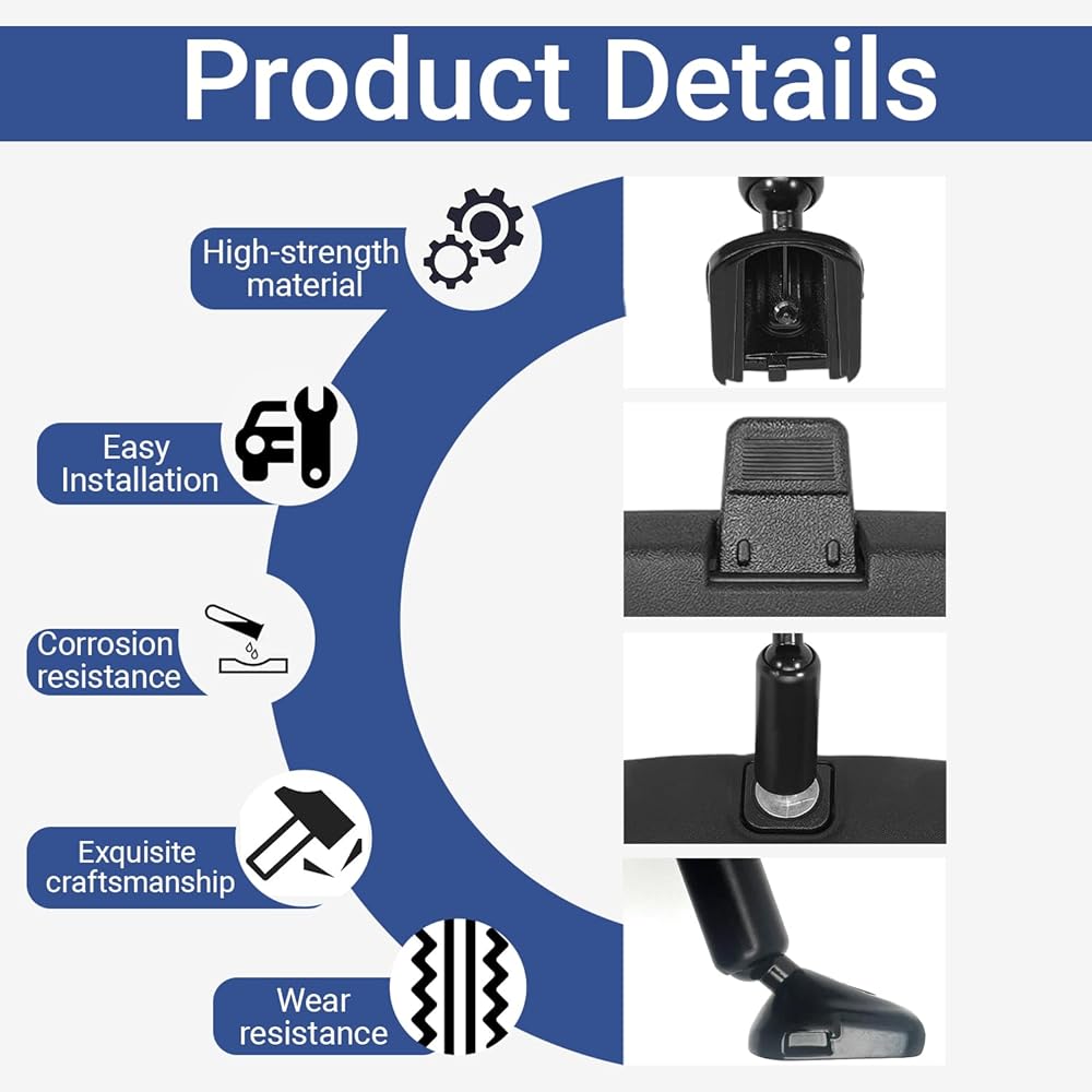 • ◇Durable and reliable: The frame and main structure of the rearview mirror are crafted from durable ABS plastic, offering excellent impact resistance and stability. It effectively protects the mirror surface from damage