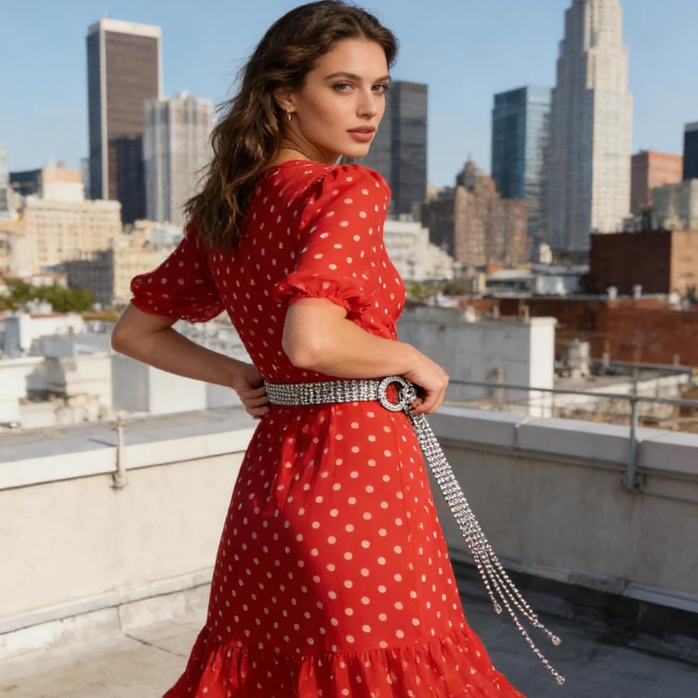 -- Hand-selected, high-brightness rhinestones are fully inlaid to create continuous sparkle; the crystals catch light from every angle and blend seamlessly with polished metal for an upscale, luxurious effect, making this crystal waist belt a statement accessory.