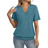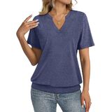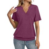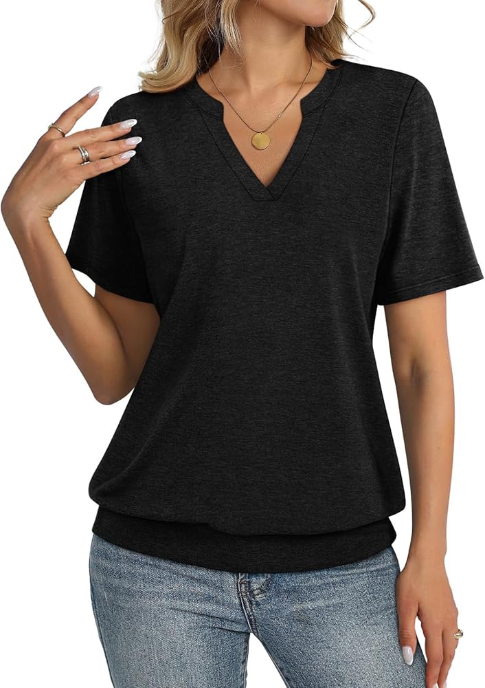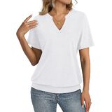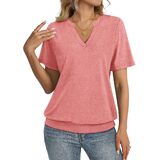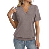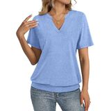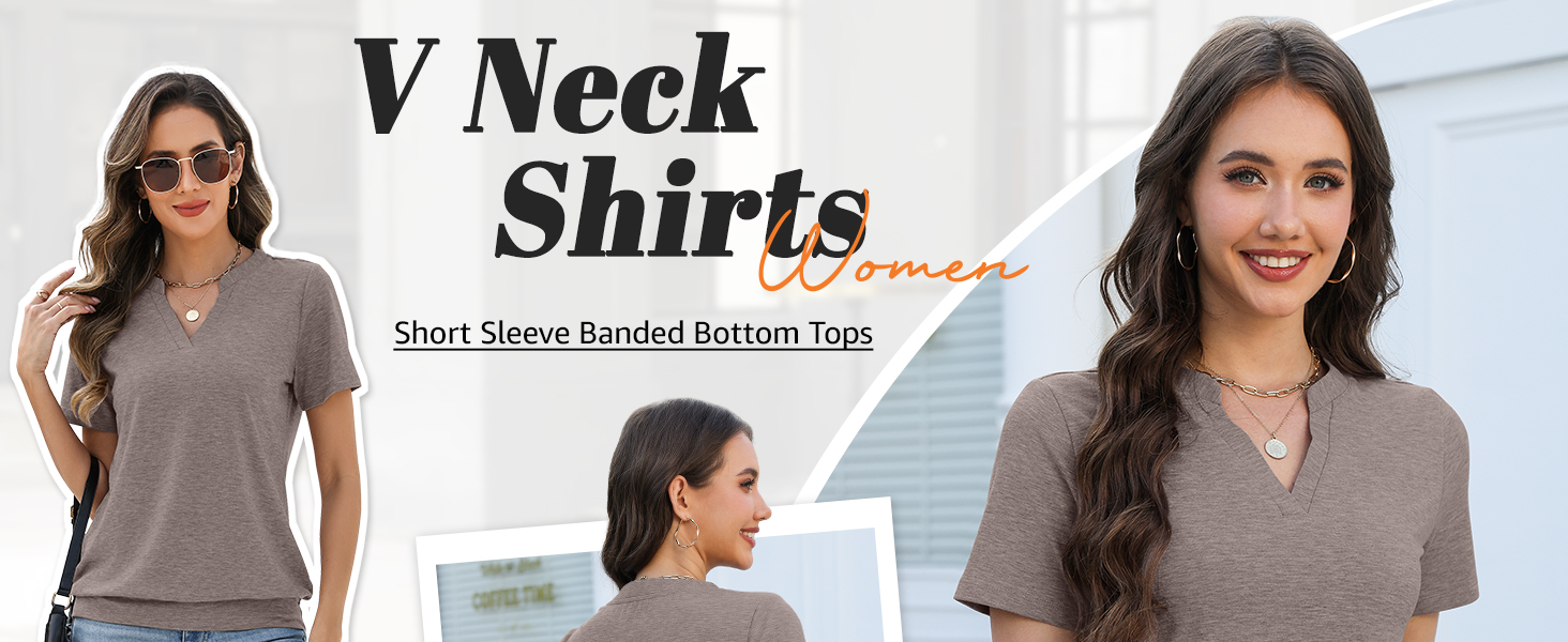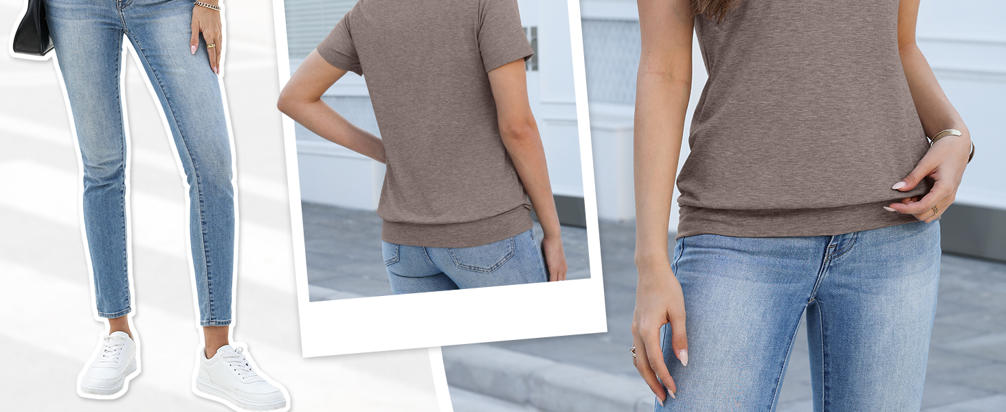 Unique Design: Short sleeve womens tops, banded bottom tops, v neck shirts for women, womens summer tops, solid color. TICTICMISS trendy short sleeve top features a flattering shallow V-neck and banded bottom hem,elongates the neckline and gently skims the waist