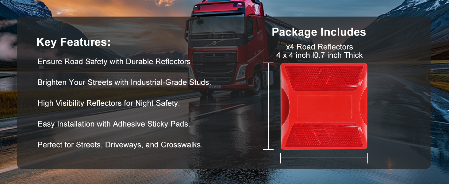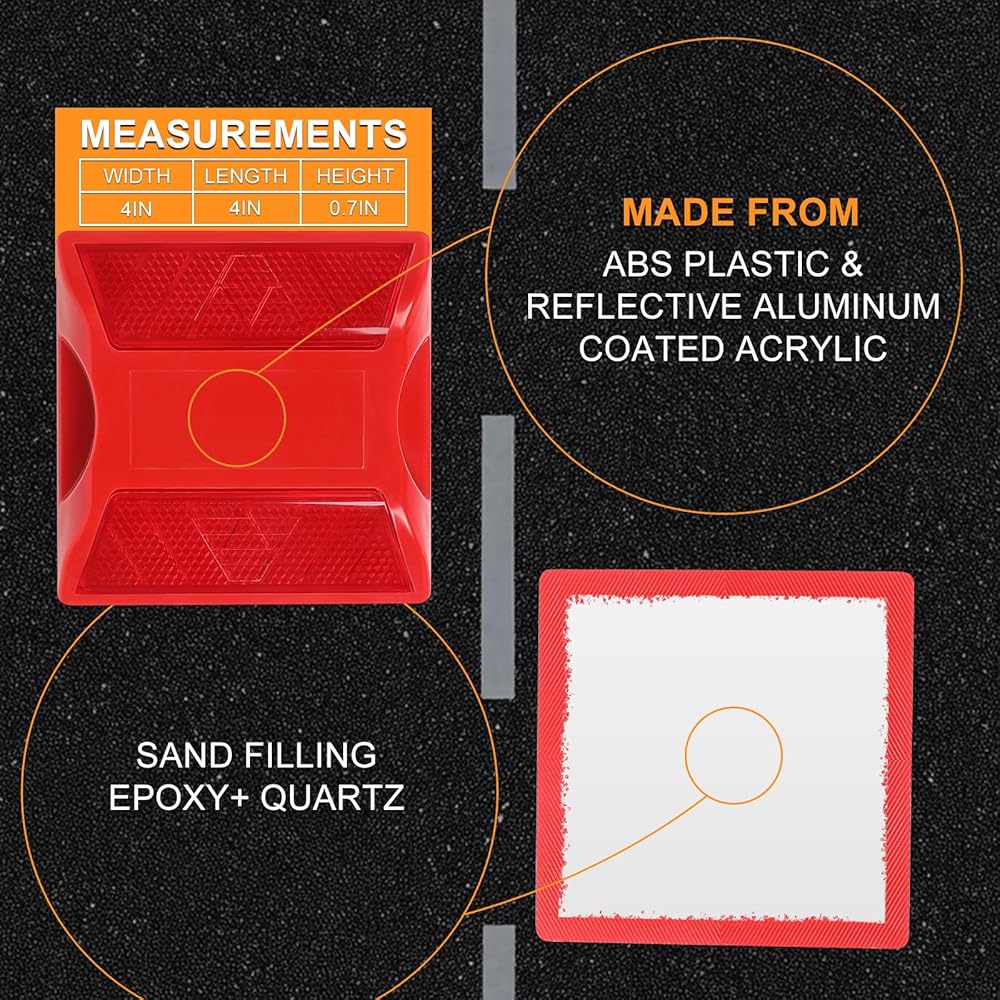 【HEAVY-DUTY & WEATHERPROOF DESIGN】Built to last. Made from industrial-grade plastic with a sturdy asphalt/epoxy filling, these road studs withstand heavy traffic, rain, snow, and UV rays without cracking or fading. Perfect for both residential driveways and commercial roadways.