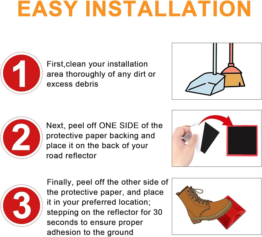 【VERSATILE FOR HOME & COMMERCIAL USE】Your all-in-one safety solution. Whether you're a homeowner securing your driveway entrance, a property manager marking parking spots, or a contractor outlining roadways, these reliable reflectors deliver professional-grade performance and peace of mind.