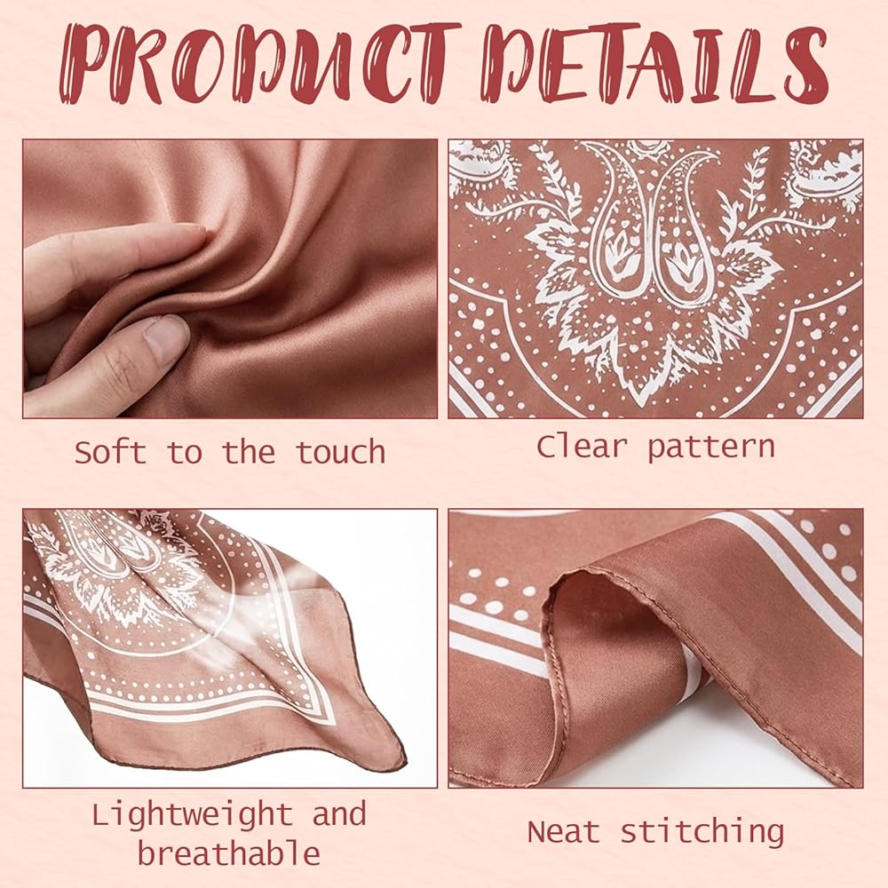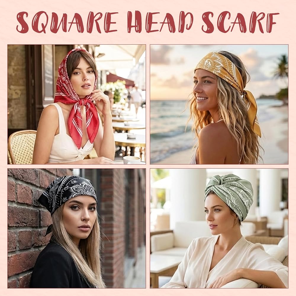 【Complete 8-Piece Value Set】You will receive eight different colored/patterned headscarves measuring 25 x 25 inches.The ample quantity provides comprehensive coverage and flexibility for various styling options,fully meeting your outfit pairing needs.