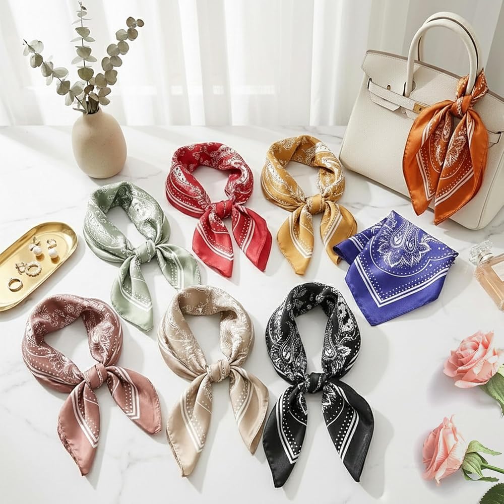 Upgrade your accessory collection with this versatile 8-piece set of 25-inch square satin scarves! Crafted from premium satin fabric, these scarves are not only stylish but also functional—designed to protect your hair while adding a touch of elegance to your look.
