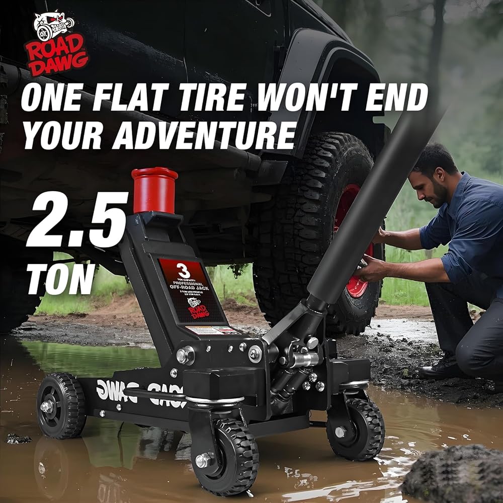 Road DAWG 3 Ton Aluminum Big Wheel Off-Road Floor Jack - Heavy Duty Hydraulic Lift for Trucks, SUVs & ATVs, 6000LBS Capacity, Professional Portable Jack