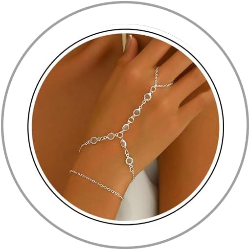 Rings Hand Chain Bracelet--Trendy hand bracelet ring hand chain is made of minimalist style hand chain bracelet with silver ring chain bracelet,Boho hand bracelet with finger ring is a best embodiment of self-expression and uniqueness