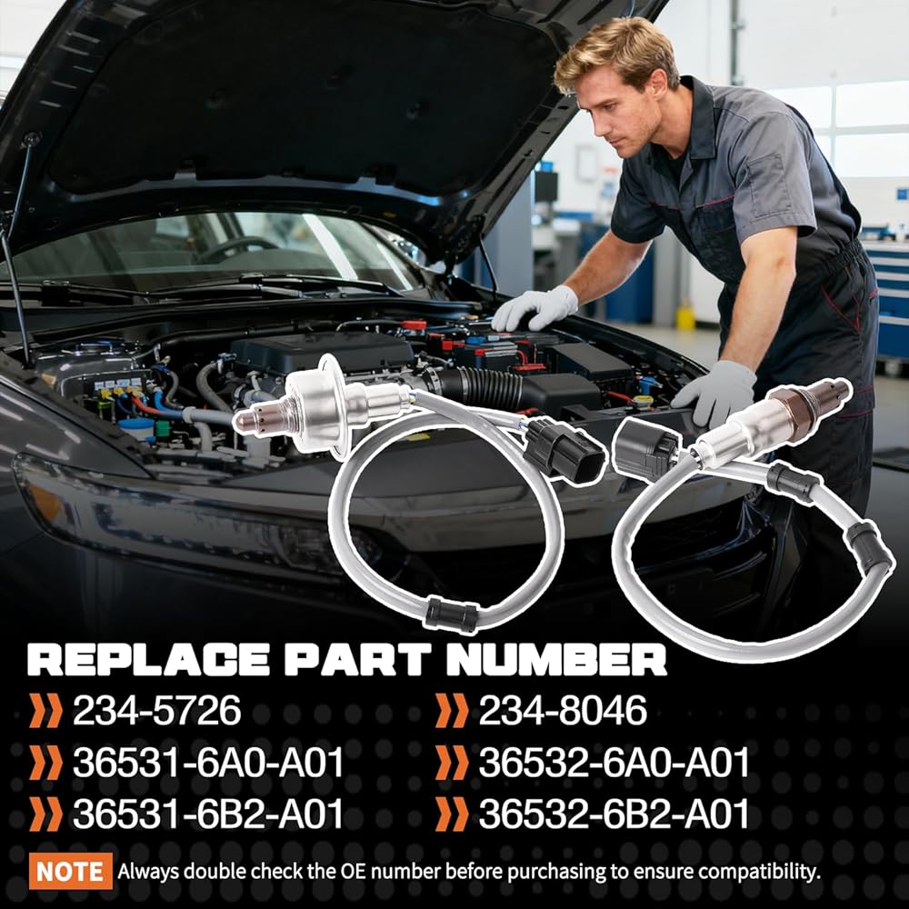 2Pcs Upstream Downstream Oxygen Sensor Fit for Honda Accord 2018-2021 Fit for Acura RDX TLX 2019-2021 Replaces 36531-6A0-A01 36532-6A0-A01 234-5726 234-8046 36531-6B2-A01 36532-6B2-A01