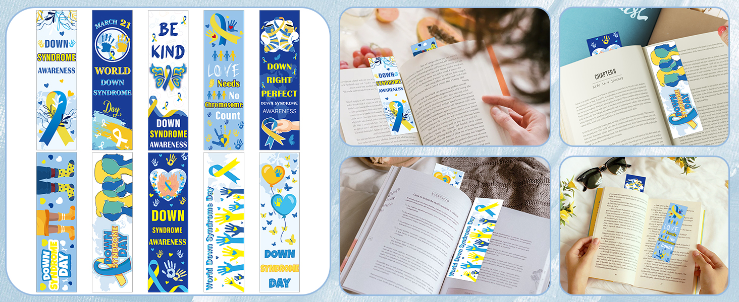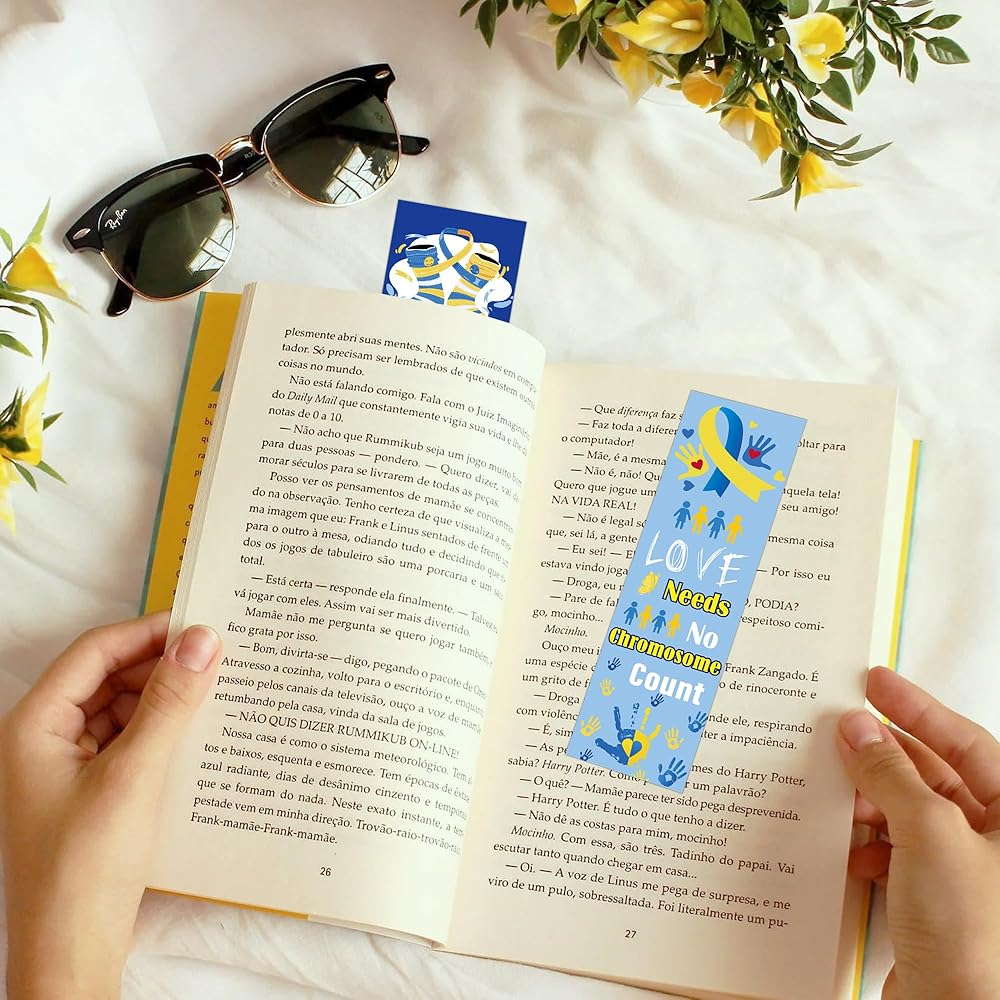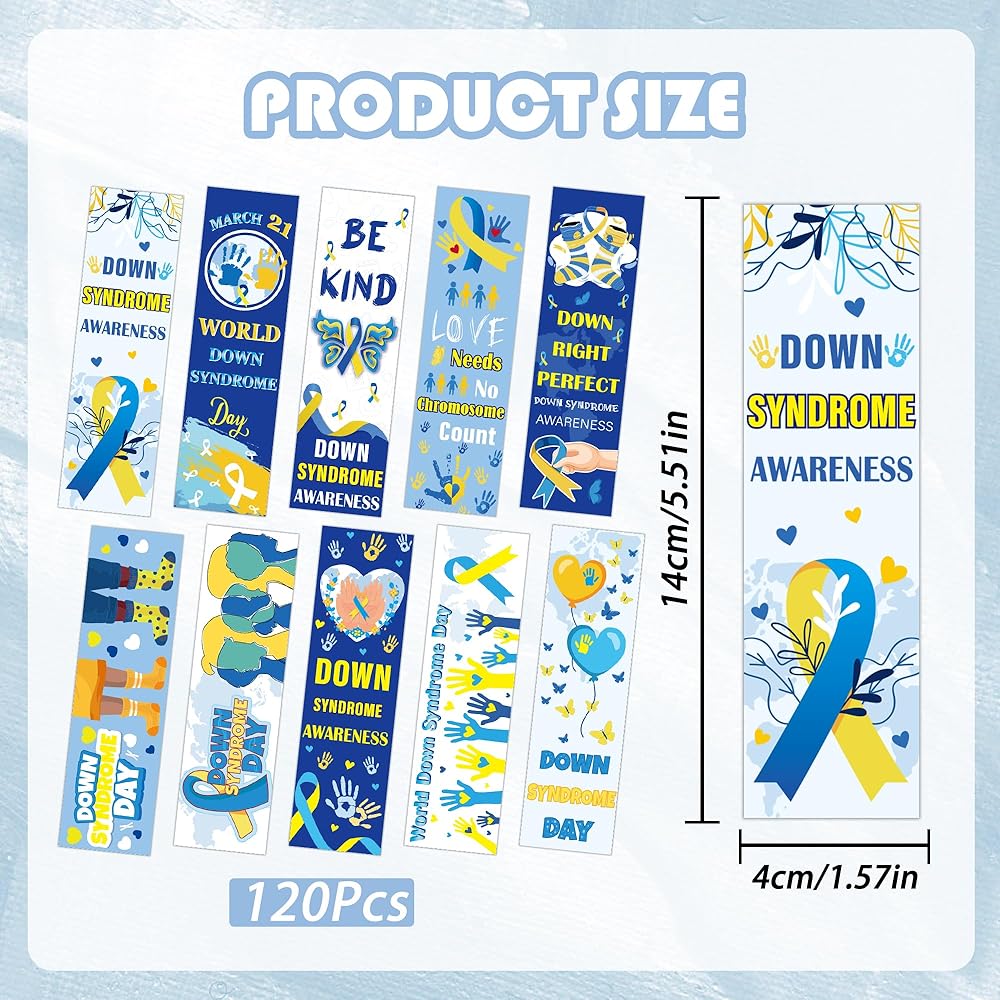 Down Syndrome Awareness Bookmarks, 120 Pcs Inspirational World Down Syndrome Day Book Marks, Blue Yellow Supportive Gifts for Seminar Handouts Charity Fundraisers School Events