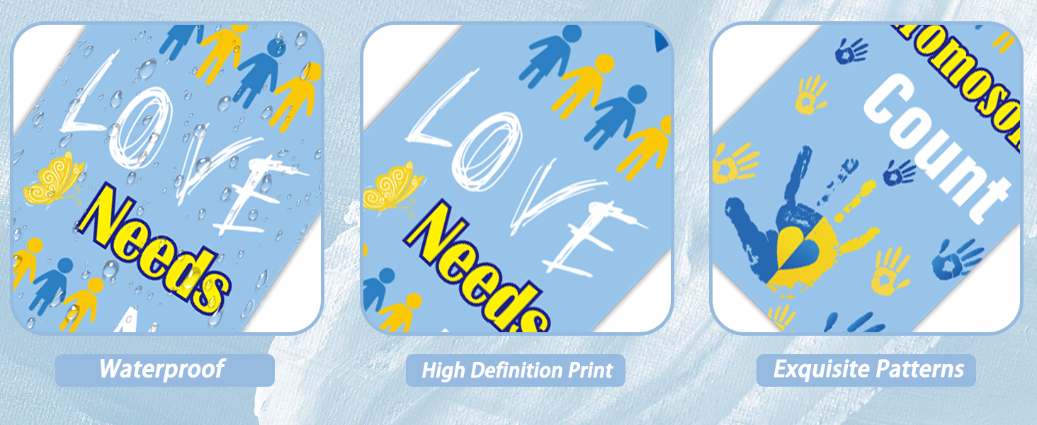 Promote Awareness: Features vibrant blue and yellow handprints with ribbons and messages; encourages support and understanding; ideal for classrooms, offices, and events