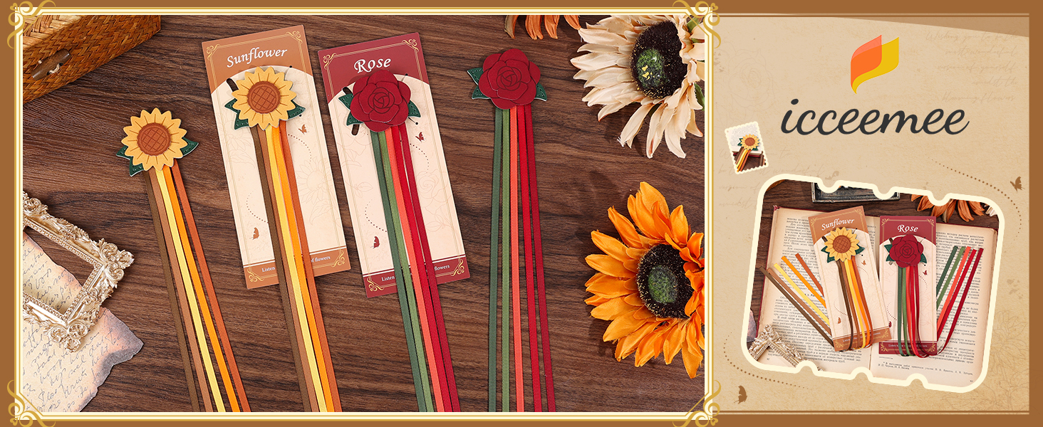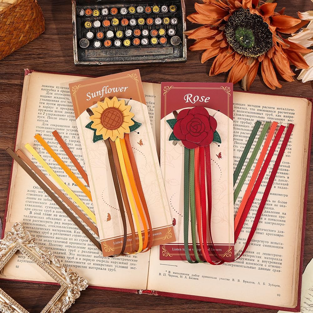 【Unique Floral Designs】Featuring two distinct styles—a delicate rose and a vibrant sunflower—these bookmarks bring a natural and artistic flair to your favorite books.