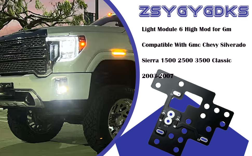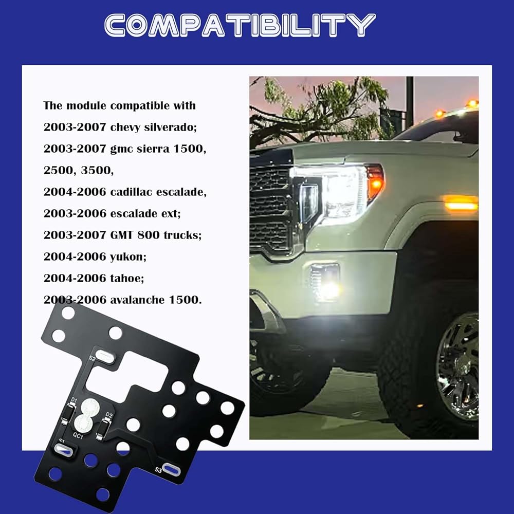 Light Module 6 High Mod for Gm Compatible With Gmc Chevy Silverado Sierra 1500 2500 3500 Classic 2003-2007 Fog Lights Low Beams And High Beams Lamp On Simultaneously