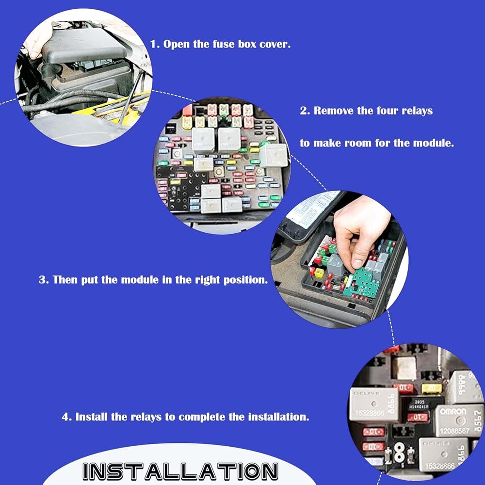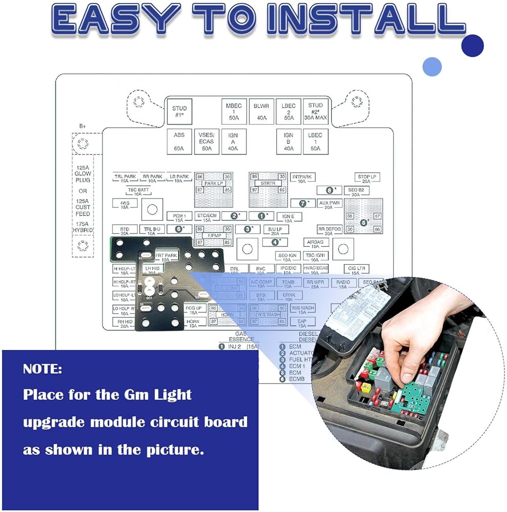 EASY TO INSTALL: No modification needed, it took less than 5 minutes to install and works. Just find your fuse box, pull out 3 relays labeled Hdlp-Hi, Hdlp-Low, Fog Lp. Lay down the circuit board and reinstall these relays back into original position.