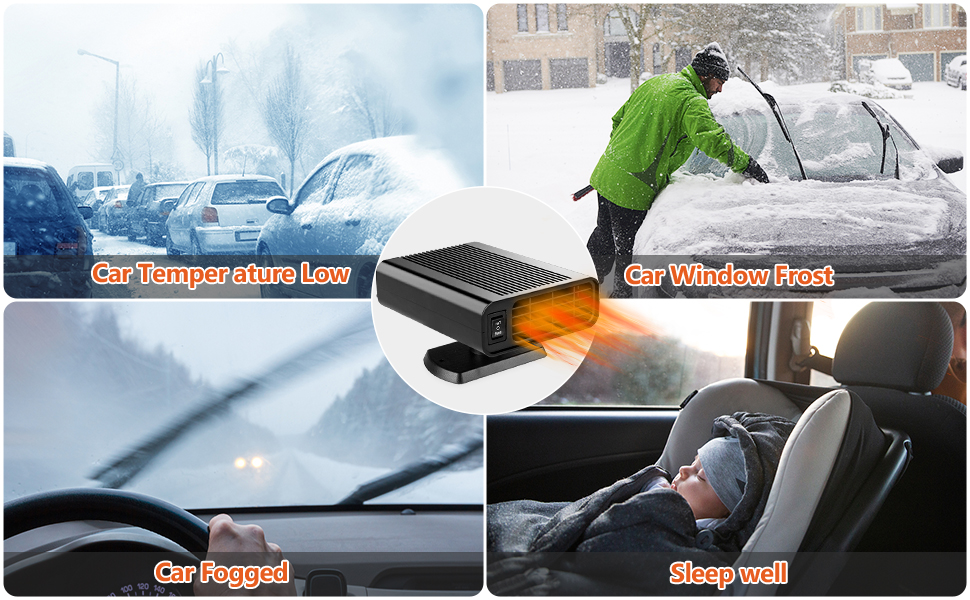 【 360° adjustable 】This portable car heater demister is adjustable with a 360° rotating stand so you can adjust it to the right Angle. Make sure the people in the car can feel the heat and cool.