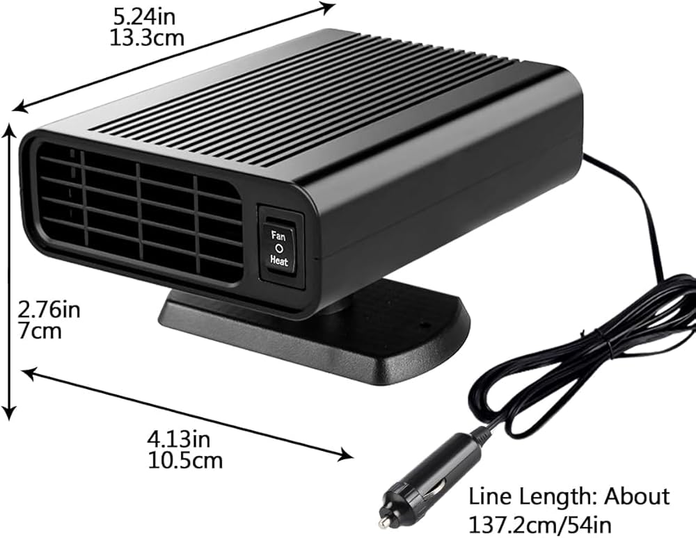 Portable Car Heater 12V 150W – 2-in-1 Cold and Hot Air Defroster with 360-Degree Base Rotation, Fast Heating Fan for Windshield Defogging, Plug-in Auto Heater for Winter Driving