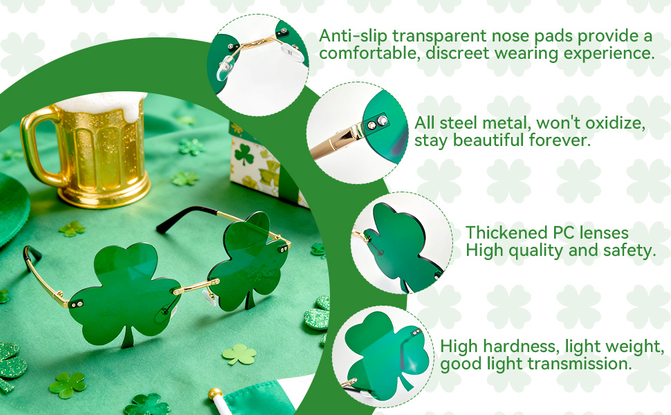 Green Shamrock sunglasses infuse every moment with Irish flair. Whether at lively parties, festive gatherings, or everyday wear, these sunglasses effortlessly elevate your style. Express your personality and let your charm shine through